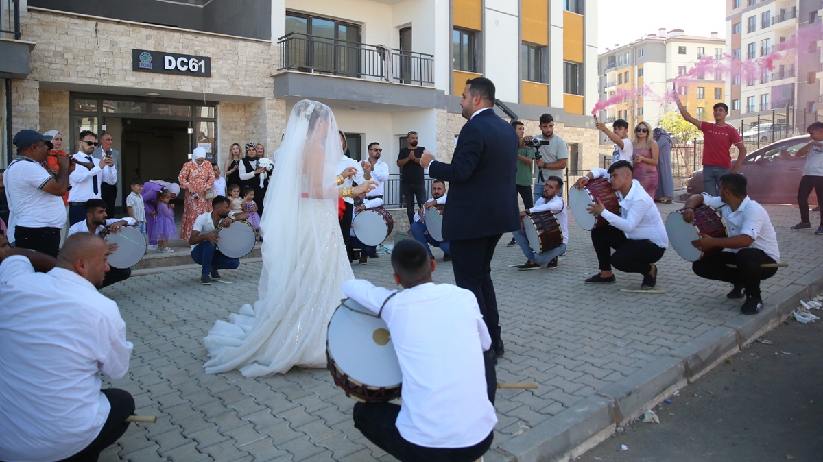 Gelin Kübra Erkul da hem konutlarına hem de sevdiğine kavuştuğu için çok mutlu olduklarını söyledi.