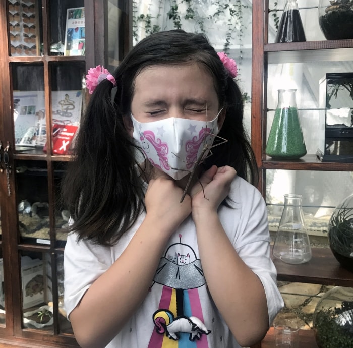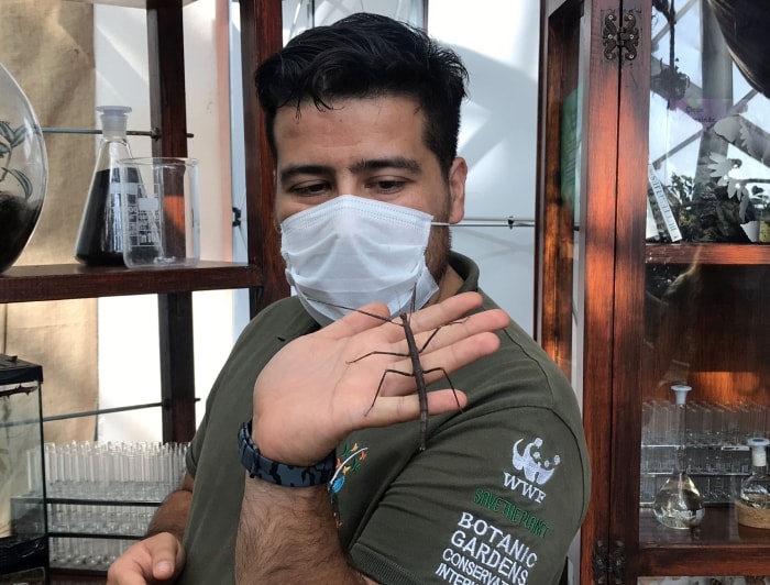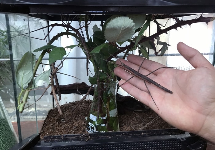 Hareketsiz olduğu durumda ise şekli sayesinde görülmesi çok zor olduğu için "hayalet" unvanını alan böcek, bahçeyi gezenlerden büyük ilgi görüyor.