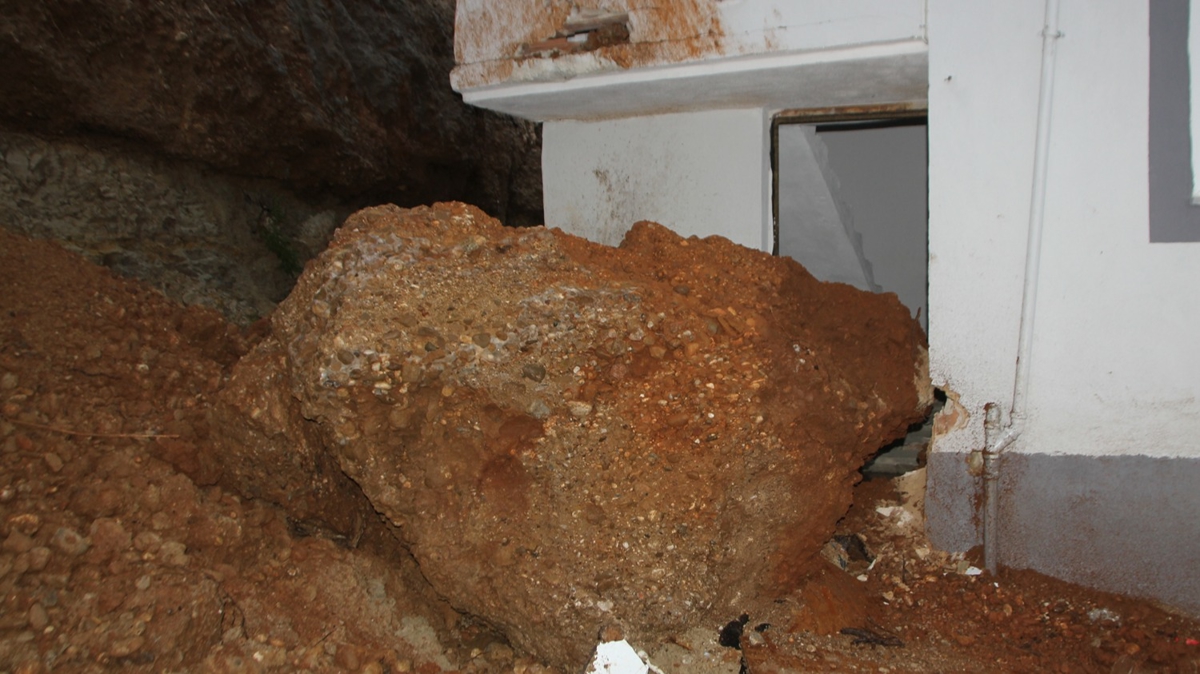 Merkez Mahallesi Seyir Tepesi mevkiinde saat 04.00 sıralarında aşırı yağış nedeniyle heyelan oluştu. Kayan kaya parçası, tepenin yanındaki 2 katlı bir evin kapısına çarptı.