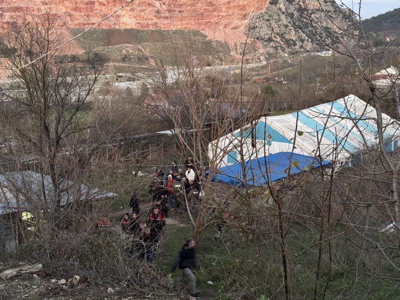 AA ekibince görüntülenen operasyonda ekipler, çadırlarda ve park halindeki araçlarda arama yaptı.
