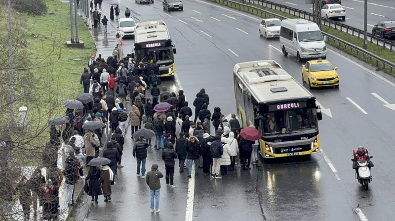 Esenler'de, metrodan inen yolcular, görevlilerin megafonla yaptığı duyurularla ücretsiz seferlere yönlendirildi.