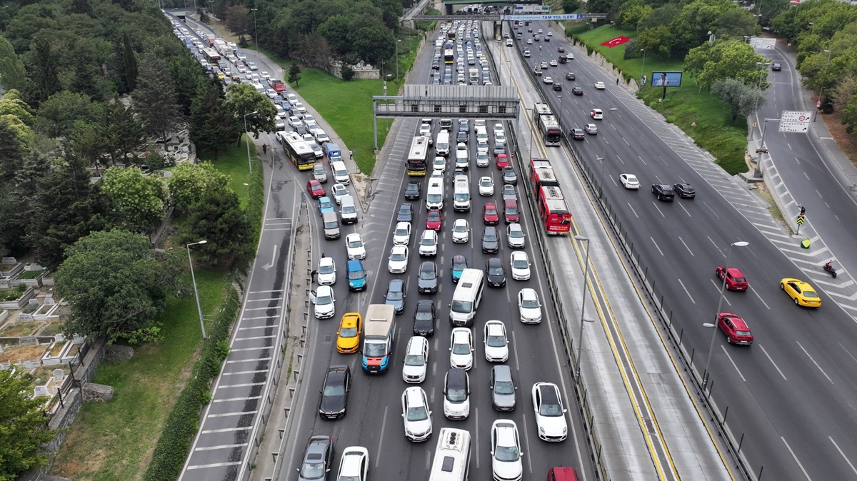 Çalışmanın da etkisiyle sabah saatlerinden itibaren D-100 kara yolu Kadıköy istikametinde trafik yoğunluğu Bahçelievler'den itibaren başlıyor.