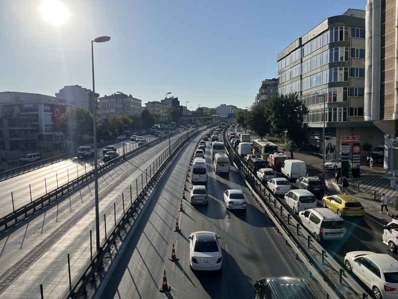 E-5 Karayolu Gümüşpala Mahallesi mevkiinde İstanbul Büyükşehir Belediyesi (İBB) tarafından yapılan metrobüs yolundaki "Beyaz yol" çalışmaları sebebiyle trafik yoğunluğu oluştu.