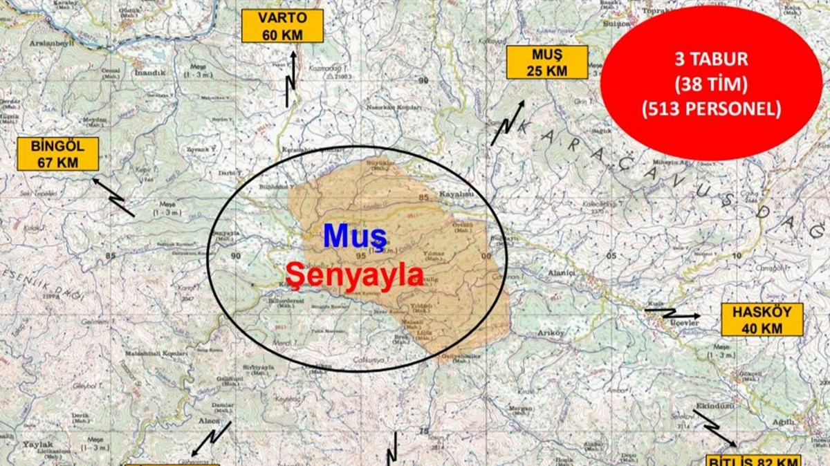 Operasyonun Muş İl Jandarma Komutanlığınca düzenlendiği kaydedilen açıklamada, jandarma komando, polis özel harekat ve güvenlik korucu timlerinden oluşan 513 personel ve 38 operasyonel timin görev aldığı bildirildi.