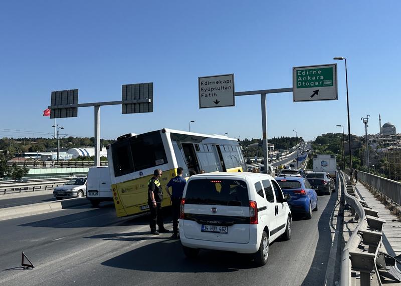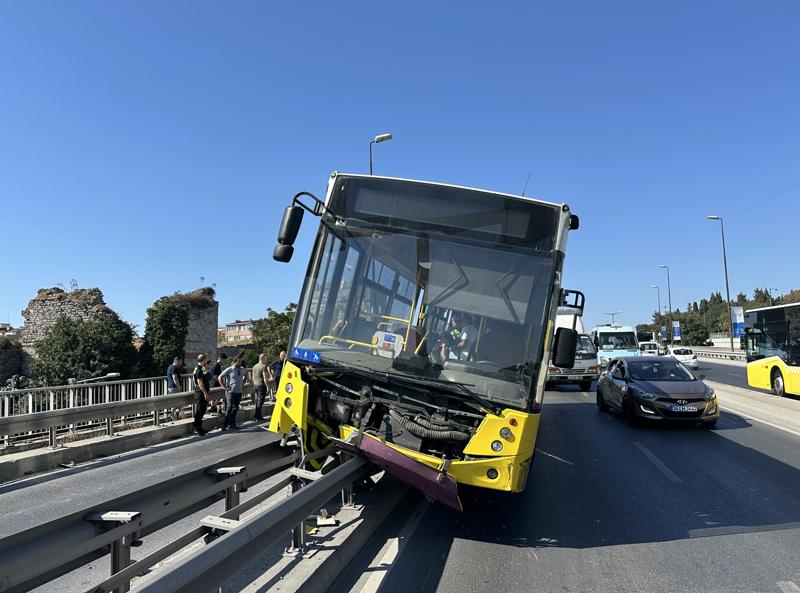 Topkapı Mahallesi 10'uncu Yıl Caddesi'nde ilerleyen, içinde yolcu bulunmayan İETT otobüsü, sürücünün kontrolünü kaybetmesi üzerine önündeki araca çarptı.