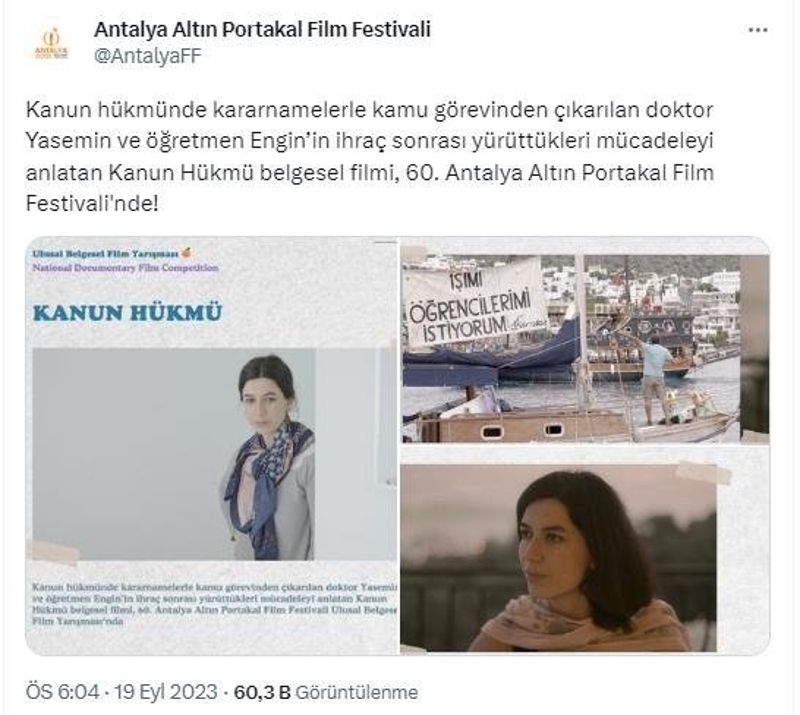 Öte yandan Demet Akbağ, Ayşegül Aldinç, Mehmet Günsur, Onur Saylak'ın da aralarında bulunduğu jüri üyeleri, FETÖ'cüleri PKK'lıları aklamak için yapılan belgeselin tekrar gösterime girene kadar festivalden çekildiklerini duyurdu.