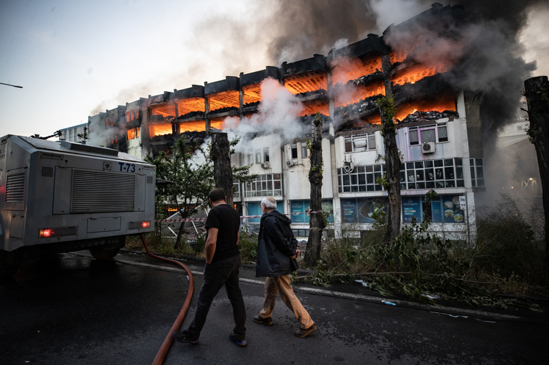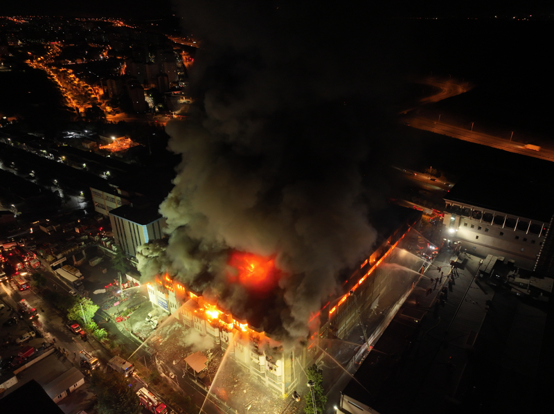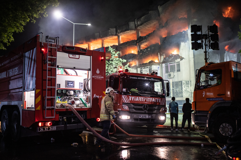 İtfaiye ekipleri yangına müdahale ederken, alevler tüm binayı sardı.