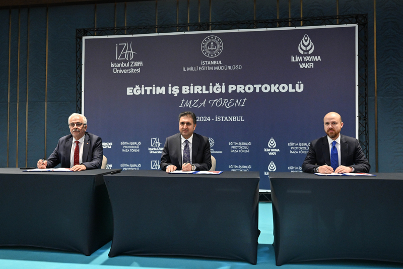 Dersin ardından İl Milli Eğitim Müdürü Yentür, İstanbul Sabahattin Zaim Üniversitesi Rektörü Acar ve İlim Yayma Vakfı Mütevelli Heyeti Başkanı Erdoğan, işbirliği protokolünü imzaladı.