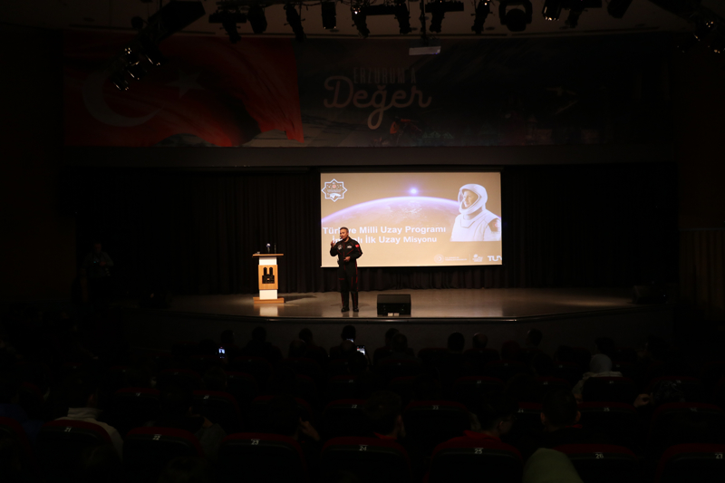 İl Milli Eğitim Müdürlüğünce Necip Fazıl Kısakürek Kültür Merkezi'nde düzenlenen programda öğrencilerle buluşan Gezeravcı, öğrencilere Türkiye'nin milli uzay programı ve insanlı ilk uzay misyonunu anlattı.
