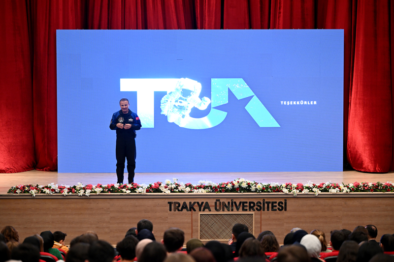 Gezeravcı, Trakya Üniversitesi Balkan Kongre Merkezi'nde Sanayi ve Teknoloji Bakanı Mehmet Fatih Kacır'ın katılımıyla düzenlenen Gençlik Buluşması'nda Türkiye'nin insanlı ilk uzay misyonunu anlattı.