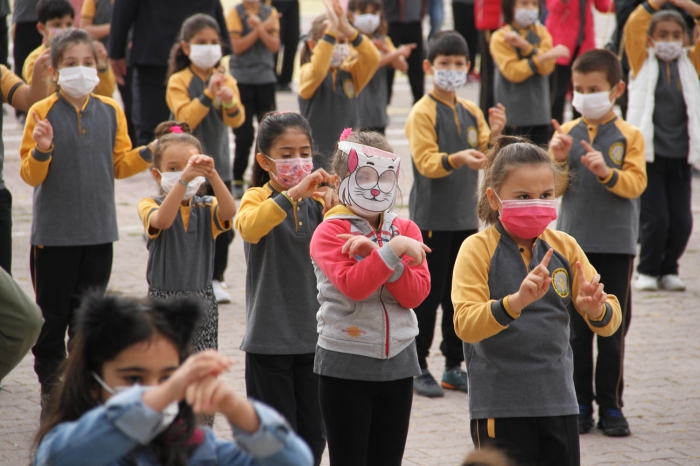 İlkokul öğrencileri ''Maskeni Tak'' şarkısını söyleyerek derse başladı