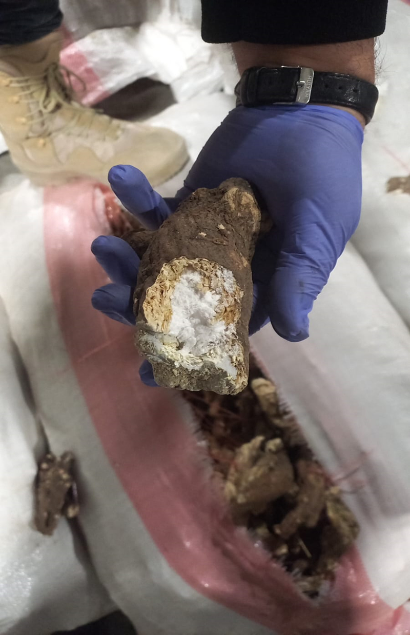 Gerçekleştirilen x-ray taramasında söz konusu araçlarda şüpheli yoğunluk tespit edilmesi üzerine, narkotik dedektör köpeklerden de faydalanılarak yapılan arama sonucunda, talk pudrasına emdirilmiş 706 kilogram ve bitki köklerine gizlenmiş 3 bin 797 kilogram olmak üzere 4,5 tonu aşkın metamfetamin cinsi uyuşturucu madde ele geçirildi.