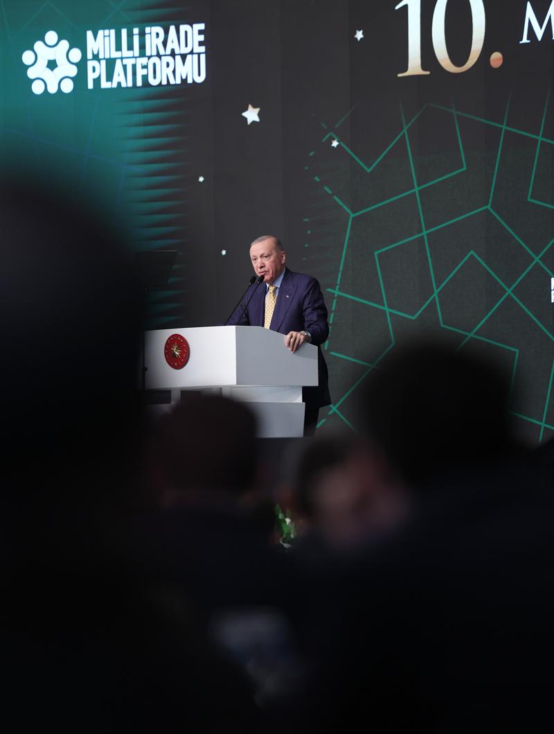 Milli İrade Platformu'nun tüm üyelerinin Ramazan-ı Şerifi'ni tebrik eden Erdoğan, ramazanda tutulan oruçların, yapılan ibadetlerin, Türkiye'de ve dünyanın farklı köşelerinde yapılan hayır ve hasenatın kabul olmasını Allah'tan niyaz etti.
