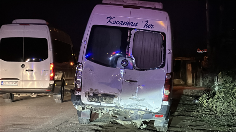 M.B. idaresindeki 54 TY 440 plakalı cip, Düzce Caddesi Topçular mevkisinde, H.K. yönetimindeki 81 S 1555 plakalı servis minibüsüyle çarpıştı.