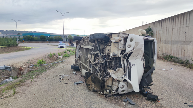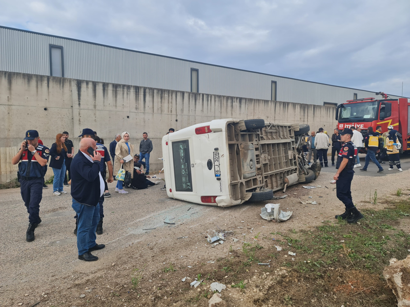 Fabrikadan aldığı işçileri evlerinde götürmek üzere yola çıkan Sürücü Mevlüt K.(61) yönetimindeki 16 J 3016 plakalı plakalı servis minibüsü, virajda sürücüsünün kontrolünden çıktı. Aydınlatma direğine çarpıp devirdikten sonra karşı yöne geçen minibüs devrildi. Kaza yerine çok sayıda 112, Jandarma komutanlığı ve İtfaiye arama kurtarma ekipleri sevk edildi. Ekipler araçta sıkışan yaralıları kurtardılar. Kaza sonucu yaralanan sürücü ile araçtaki işçiler Fadime S.(18), Nagihan D.(45), Zübeyde E.(38), Fatma M.(26), Merve İ.(18), Behiye E.(20), İpek Ö.(19), Nesrin S.(43), Pelin D.(18), Mehmet A.(48), Elanur Y.(18) ve Nazan T.(44) Ambulanslarla İnegöl Devlet Hastanesi ve 2 özel hastaneye kaldırıldılar.