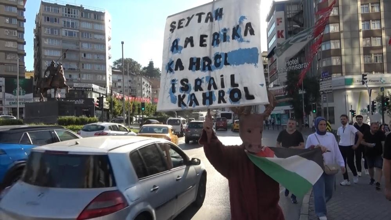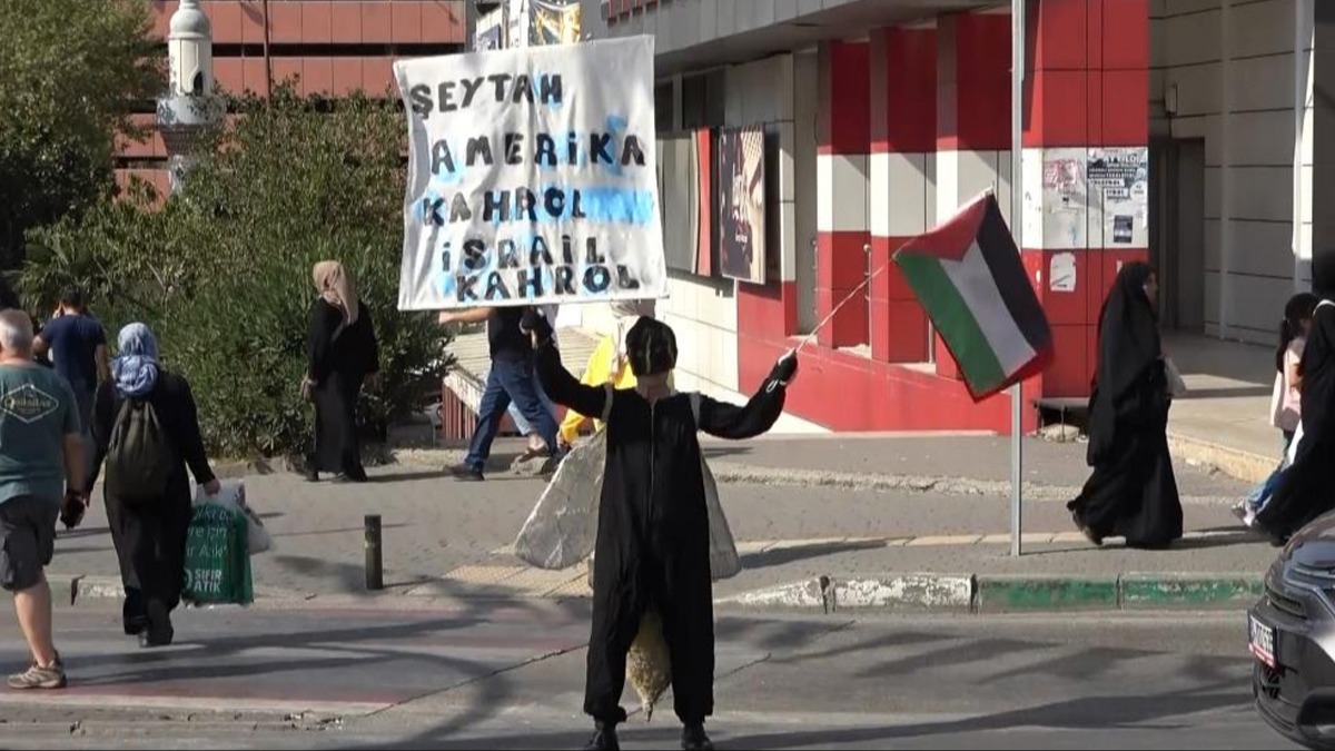 Amerika ve İsrail'in işlediği insanlık suçuna sessiz kalamadığını aktaran tiyatro sanatçısı Bahtiyar Keskin, "Bu eylemi 1 aydır farklı hayvan kostümleri giyerek gerçekleştiriyorum. Eylemi gerçekleştirme maksadım tüm halkı İsrail'in Filistin'de yaptığı zulüm hakkında bilinçlendirmek. İsrail'in Amerika'yı karakol olarak kullanıp bizlere suçlu değiliz gibisinden Amerika, şeytanca bir oyun oynuyor. İsrail'e gizlice gemi ve uçak gönderip halkı ateşkes yapmak istiyoruz diye kandırıyor. Netanyahu, Amerika'dan güç aldığı için sürekli kadın ve çocukları öldürüyor. Netanyahu, sıkıyorsa Hamas'ın askerlerine saldırın. Amerika, senin gücü sadece çocuklara ve kadınlara mı yetiyor, bu mu Amerika'nın gücü. Amerika'nın büyük bir İslam düşmanlığı var. İslam düşmanlığı olmasaydı, Müslümanlara bu şekilde zulüm uygulamazsın. Bu kadar Filistinliye zulüm yapılıyor. Filistinlileri çadırlarda toplayıp toplu vuruyorsun. Nemrut o kadar güçlü olmasına rağmen burnuna sinek girdi. Ondan sonra Nemrut kafasını duvara vura vura öldü. Ben de burada arı adam olarak Amerika'nın burnundan sokup zehirleyeceğim" diye konuştu.