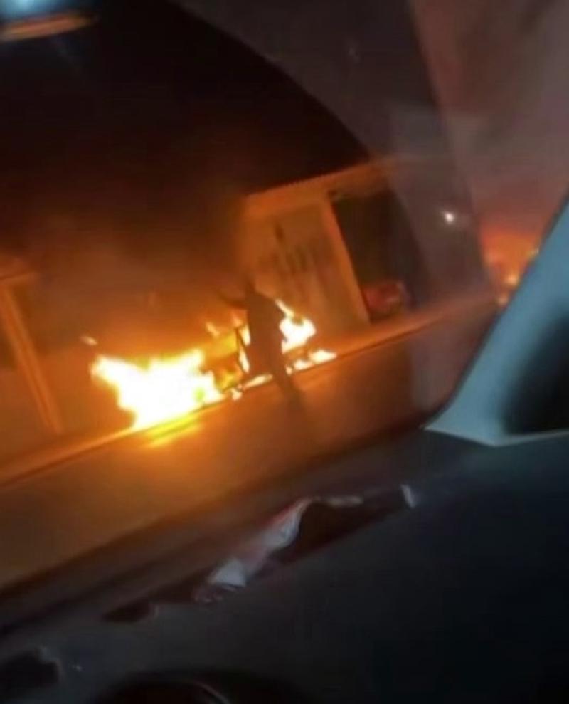 Sakarya'nın Arifiye ilçesinde bulunan Dörtyol Sanayi'de ilginç bir olay yaşandı. Bir vatandaş, İsrail'in zulmüne tepki çekmek için sanayinin ortasında otomobilini yaktı. Alevleri görerek bölgeye giden farklı bir kişi ise akıl almaz olayı cep telefonu ile saniye saniye kayıt altına aldı.