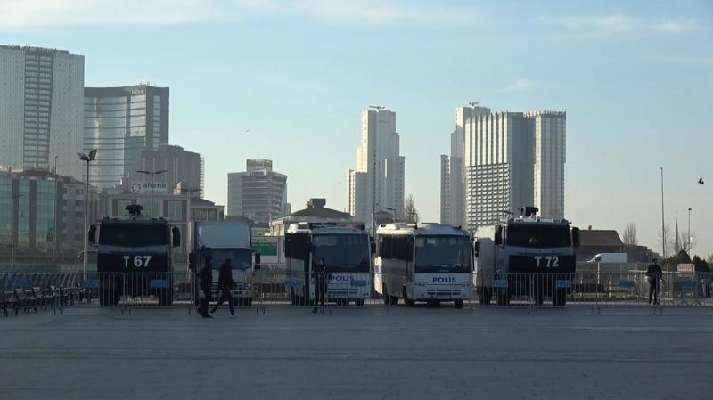 İstanbul Adliyesi çevresinde polis ekipleri devriye gezerken, TOMA ve polis araçları meydanda hazır bekletiliyor.