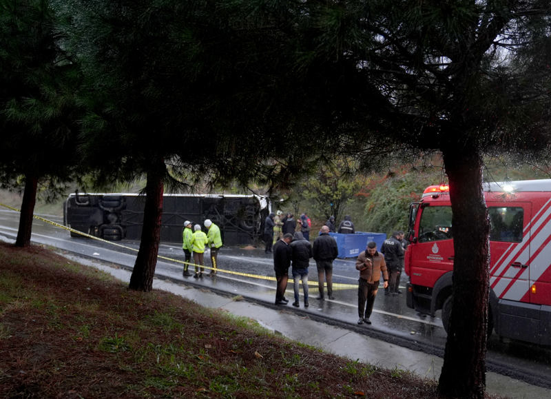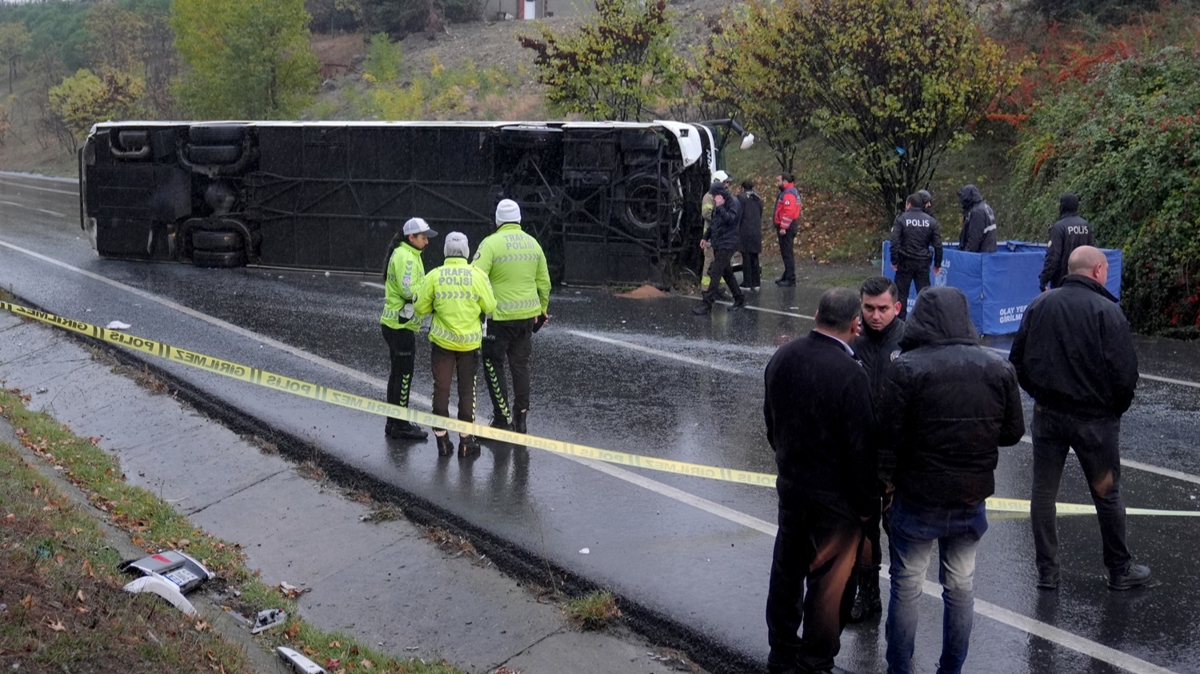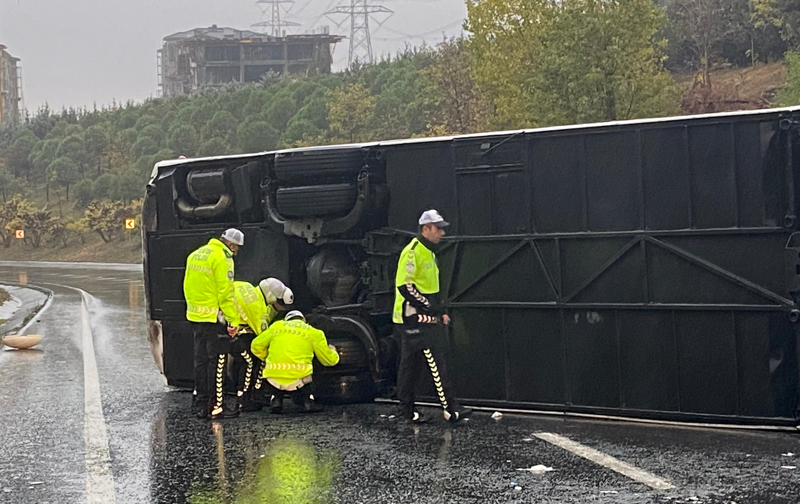 Esenler Otogar Bağlantı Yolu'nda sürücüsünün kimliği ve firma adı henüz belirlenemeyen 33 AVD 156 plakalı şehirlerarası yolcu otobüsü devrildi.