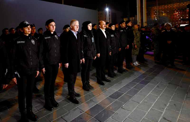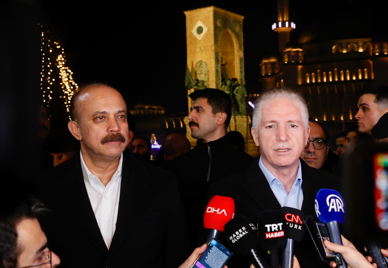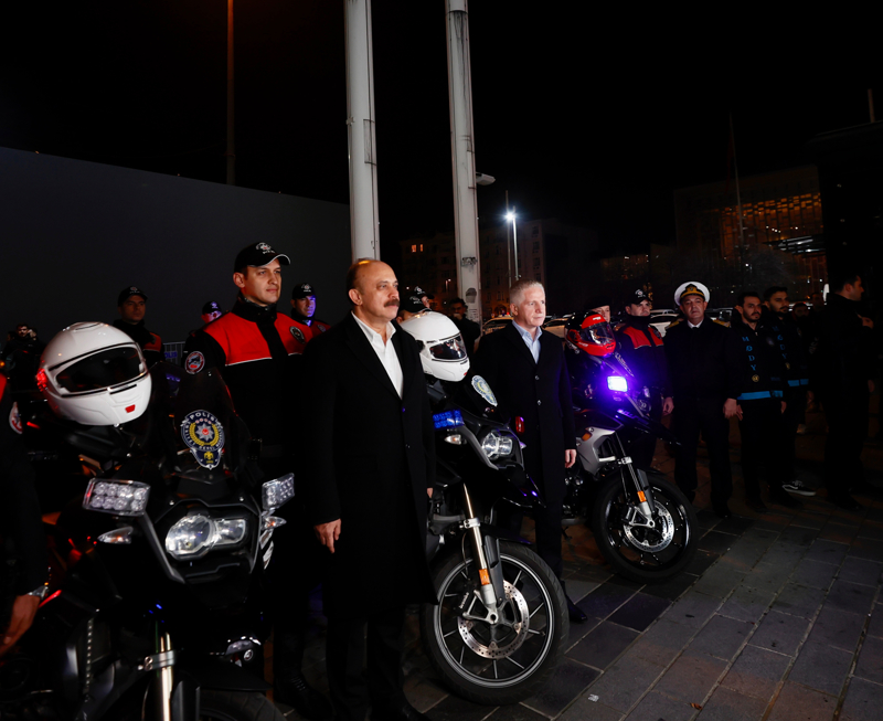 Valisi Gül, İstanbul'da yılbaşı kutlamalarının en yoğun olduğu yerlerden Beyoğlu'nda Taksim Meydanı ve çevresinde görev yapan polisleri ziyaret etti.
