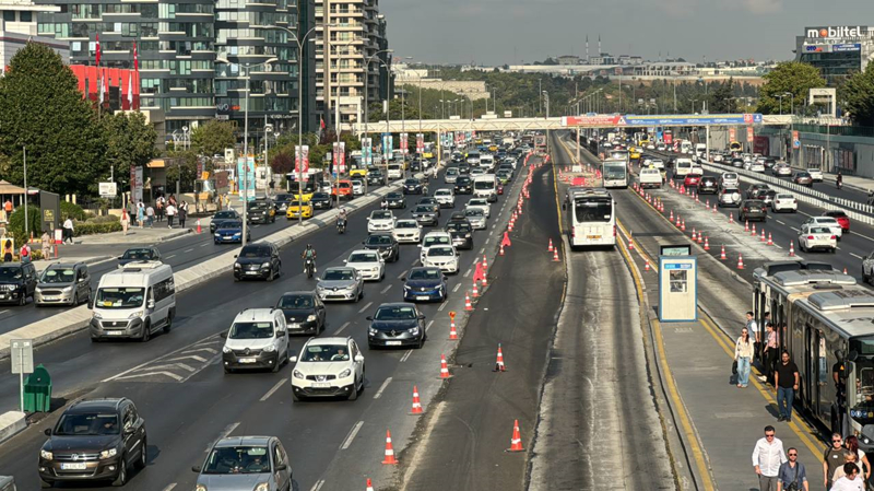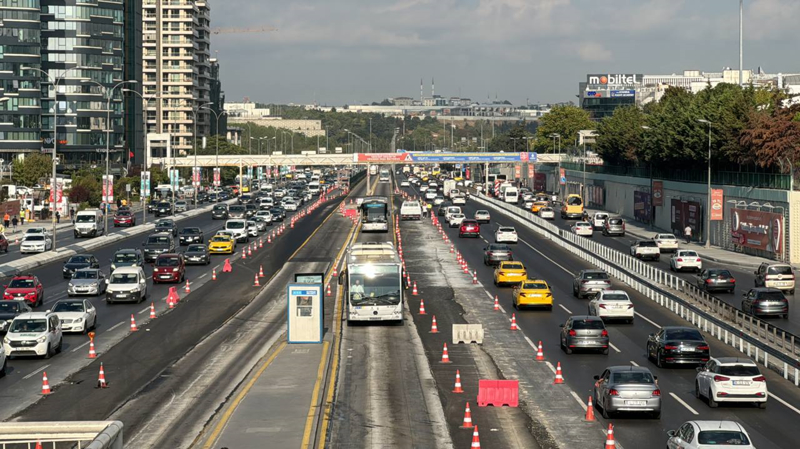 Metrobüs araçları da dubalarla kapatılan şeritten ilerledi.