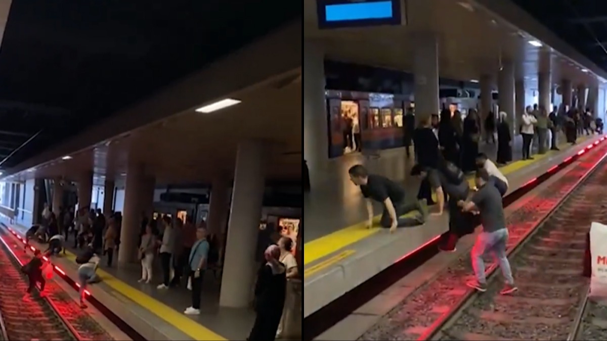 Esenler istasyonunda bekleyen yolcuların, rayların üstünden atlayarak metroya binmek için karşı yöne geçtiği görüldü.