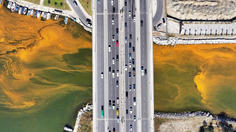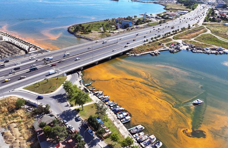Bazı bölgelerde deniz renginin kızıla ve sarıya döndüğü görülürken renk değişimi dronla da görüntülendi.