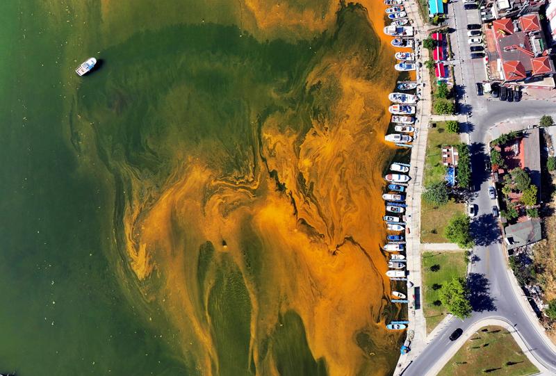 Bazı bölgelerde deniz renginin kızıla ve sarıya döndüğü görülürken renk değişimi dronla da görüntülendi.