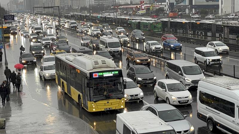 Kentte aralıklarla etkili olan yağış nedeniyle sürücüler trafikte yavaş ilerlerken, özellikle aktarmaların yapıldığı toplu taşıma duraklarında da yoğunluk yaşanıyor.