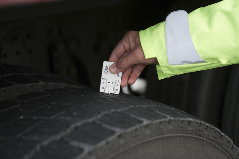 Kuzey Marmara Otoyolu, Fenertepe Gişeler mevkisinde oluşturulan denetim noktasında şehirler arası yük ve yolcu taşıyan araçların lastikleri kontrol edildi.