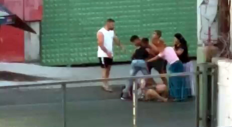 Bir süre sonra kadının darp edildiğini fark eden bir adam grubun yanına geldi. Kadına şiddet gösteren kişi bu kez duruma tepki gösteren adama saldırdı. Sopalar ve taşların konuştuğu kavga anları cep telefonu kamerasına saniye saniye yansıdı. Kadının şiddete uğramasına tepki gösteren adam, bu kez kalabalık grubun hedefi oldu. Bu sırada şiddet gören kadın kaçarak olay yerinden uzaklaşırken, iki taraf arasındaki kavga uzun süre devam etti.