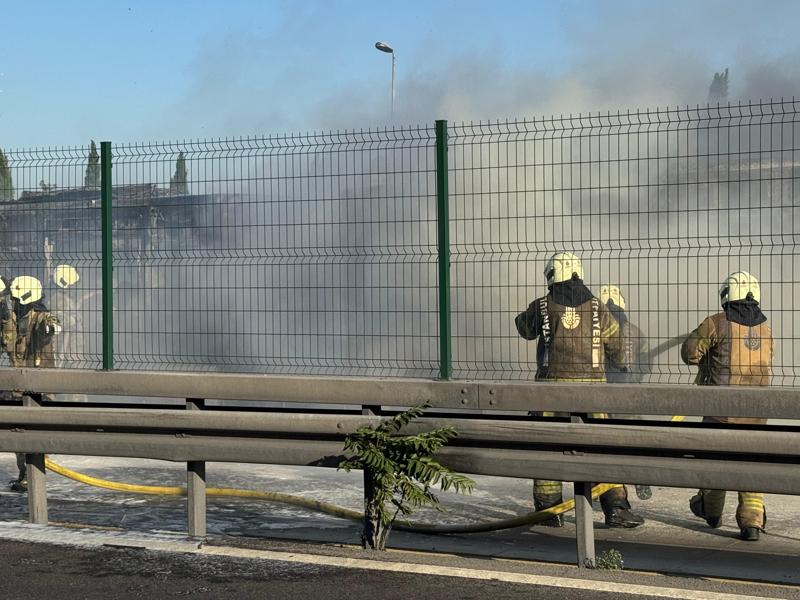 Yangın nedeniyle her iki istikamette de metrobüs seferleri durdurulurken, bölgede uzun metrobüs kuyruğu oluştu.