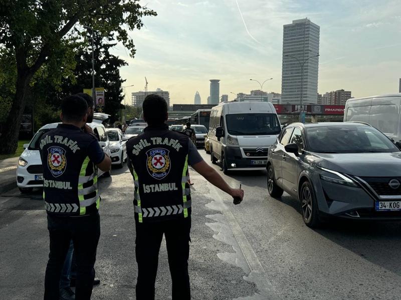 Şişli Darülaceze Caddesi'nde, Trafik Şube Müdürlüğü ile sivil trafik ekiplerince denetim noktası oluşturuldu.