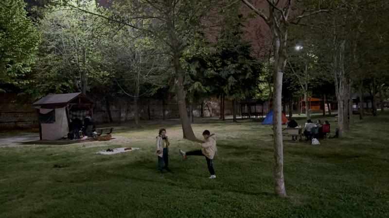 Selim, dün gece çocukları korktuğu için araçta evlerinin önünde uyuduklarını, belediyenin açtığı alanı duyunca çadırlarını alıp buraya geldiklerini kaydetti.