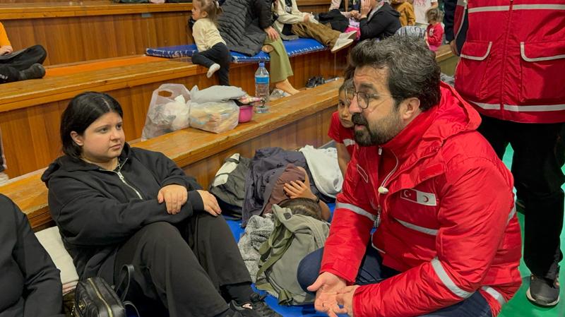 Küçükçekmece Kızılay Şube Başkanı Mehmet Fatih Kerimoğlu da spor salonundaki vatandaşlara erzak, su ve battaniye dağıtımında yer aldı.