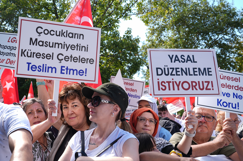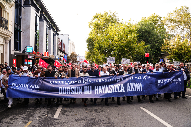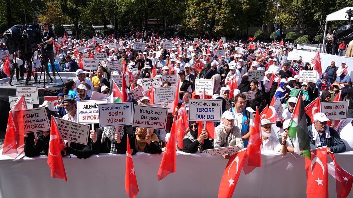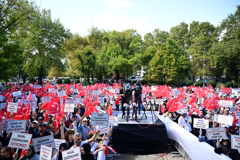 Yaklaşık 400 sivil toplum kuruluşunun destek verdiği etkinlik için bir araya gelen kalabalık, "Dursun bu hayasızca akın", "Aileyi korumak milli güvenlik meselesidir", "Sosyokültürel teröre dur de" , "Ailemize anayasal koruma istiyoruz" , "Aileye savaş açanlara geçit verme", "Aile hedefte, başını çevirme", "Çocuklar için sesini yükselt" yazılı dövizler taşıyarak LGBT dayatmasına karşı sloganlar attı.