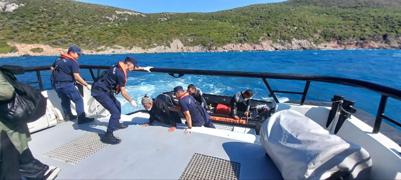 Öte yandan Çeşme ilçesi Karaada'da düzensiz göçmenlerin olduğu ve yardım talebinde bulunulduğu bilgisi üzerine bölgeye Sahil Güvenlik helikopteri, botu ve dalış timi görevlendirildi.