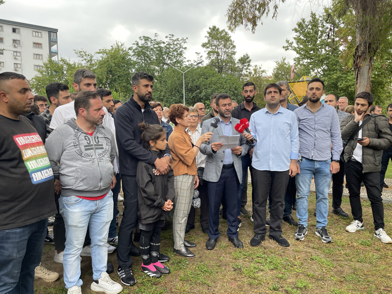 Bayraklı ilçesindeki Mansuroğlu Mahallesi'nde bulunan Zeki Müren Parkı içindeki Baro Bahçe önünde bir araya gelen grup üyeleri, sloganlar attı.
