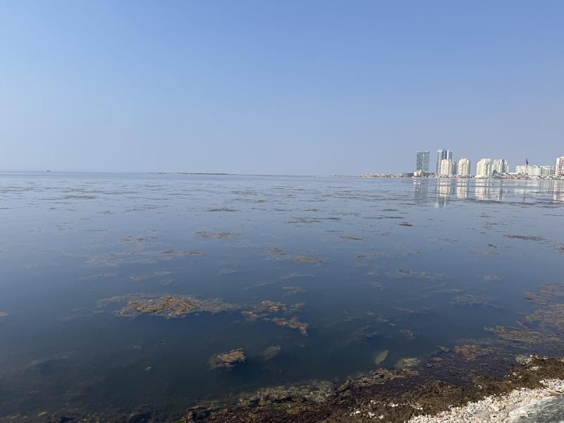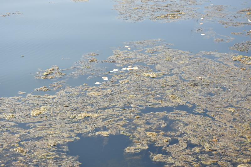 İzmir Körfezi'nin Bostanlı sahili tarafında, deniz suyundaki azot ve fosfor miktarının artmasıyla çoğalan deniz yosunu (Ulva lactuca) su yüzeyinde yeşil bir örtü oluşturdu.