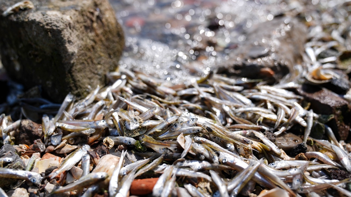 KÖTÜ KOKU SONRASI İNCELEME BAŞLATILDITuran Mahallesi Muhtarı Nursel Ölmez, AA muhabirine sabah sahilden kötü koku gelmesi üzerine inceleme yaptıklarını, çok sayıda balığın kıyıya vurduğunu görünce durumu ekiplere bildirdiklerini söyledi.