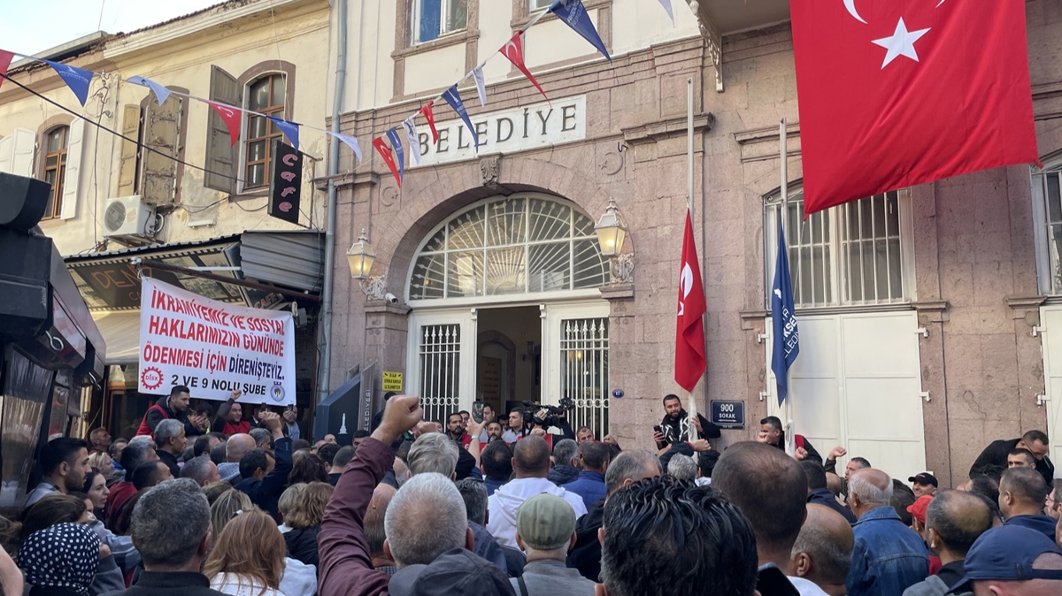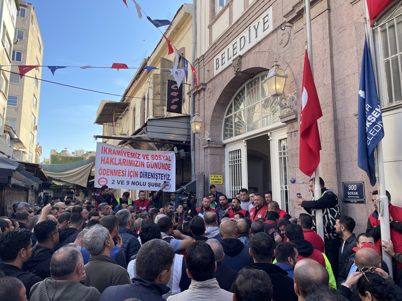 Genel İş İzmir 9 No'lu Şube Başkanı Sedat Kenar, gazetecilere yaptığı açıklamada, yaklaşık 3 yıldır ikramiye ve sosyal haklarını zamanında alamadıklarını, işveren temsilcilerinin ikramiye alacağının bölünerek ödenmesi teklifini kabul etmediklerini belirtti.