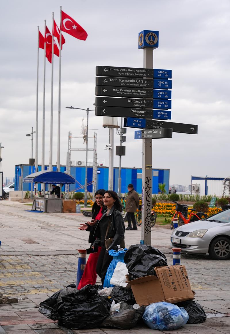 "KORDON'A YAKIŞMAYAN BİR DURUM"Kordon'da bir restoranda çalışan Erhan Göl, gazetecilere çöp yığınları nedeniyle oluşan kötü kokudan müşterilerin rahatsız olduğunu belirterek, "Böyle bir çöp birikimi söz konusu değildi. Belediye araçları çöp biriktikten sonra bölgelerden 3-4 sefer geçerek alıyordu ama son iki gündür böyle bir durumla karşı karşıyayız. Hiç hoş bir şey değil. Kordon'a yakışmayan bir durum. Biz de memnun değiliz umarım en kısa zamanda çözülür." diye konuştu.