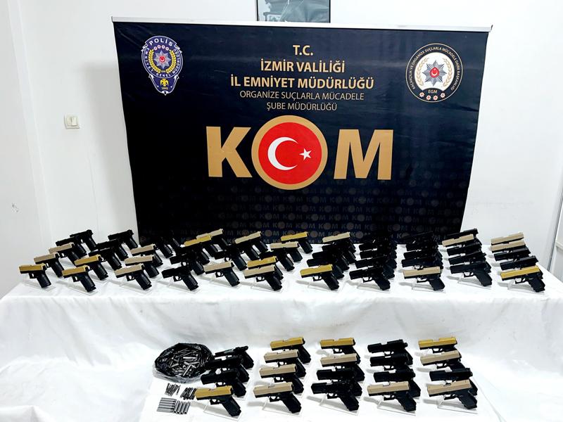 İzmir Cumhuriyet Başsavcılığı koordinesinde, İl Emniyet Müdürlüğü Organize Suçlarla Mücadele ve İstihbarat Şube müdürlükleri ekiplerince yasa dışı silah ticareti yapan kişilere yönelik çalışma yürütüldü.