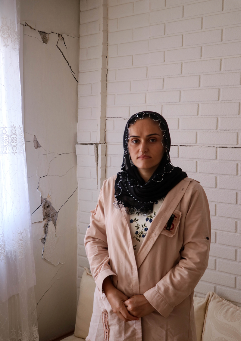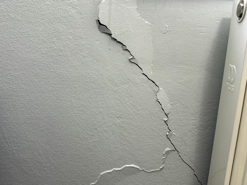 Apartmanın üst katlarının daha kötü durumda olduğunu anlatan Karaaslan, "Her dairede ve odalarda çatlaklar var. Bizim sadece yatak odasında çatlak yok. Yetkililer yapılacağını söyledi. Ancak şimdiye kadar bir işlem yapılmadı. Çok tedirgin olduk. Gece yerimden zıpladım. Deprem gibi hissettim." ifadelerini kullandı.
