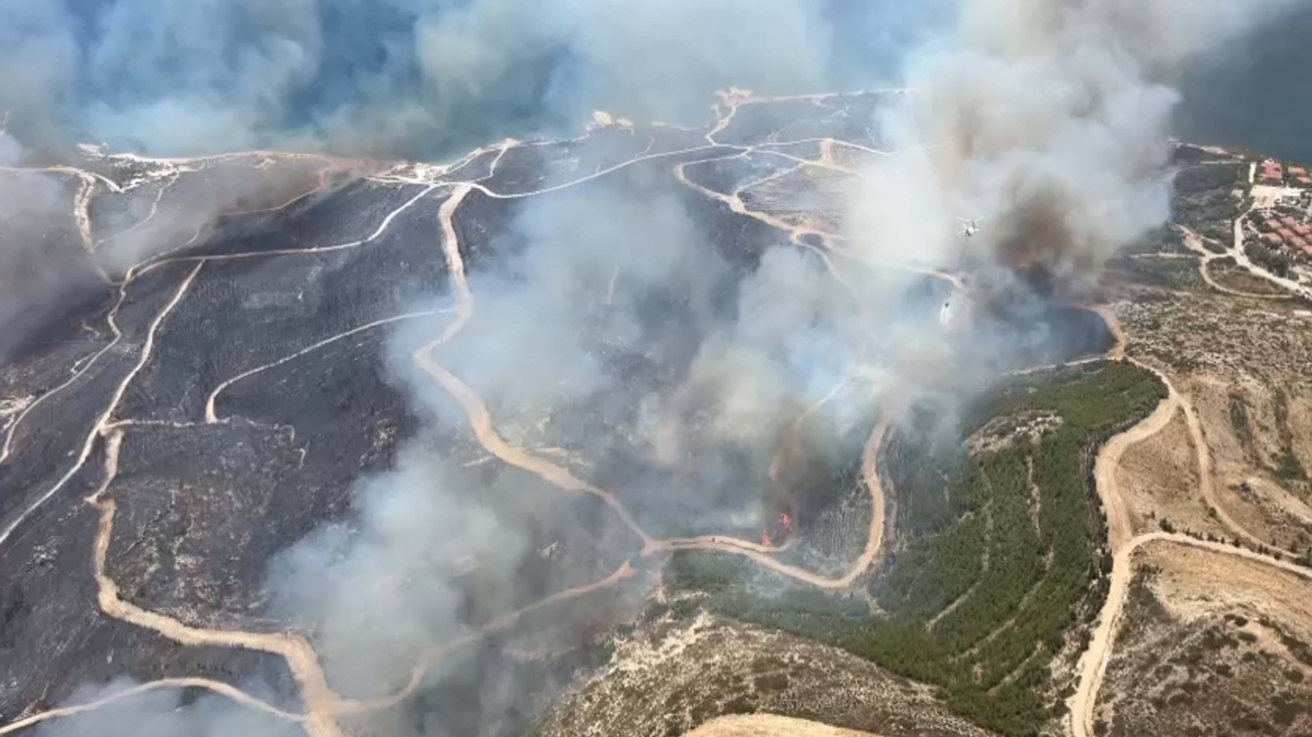 İhbar üzerine bölgeye İzmir Orman Bölge Müdürlüğüne ait 2 uçak, 4 helikopter, 16 arazöz, 3 su ikmal aracı, 3 dozer ve yer ekibi sevk edildi.