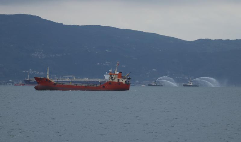 ÇEVRE KİRLİLİĞİ OLUŞMADIMakine dairesinde çıkan yangın gemi personelince kontrol altına alınırken, römorkörle soğutma çalışmaları devam ediyor.