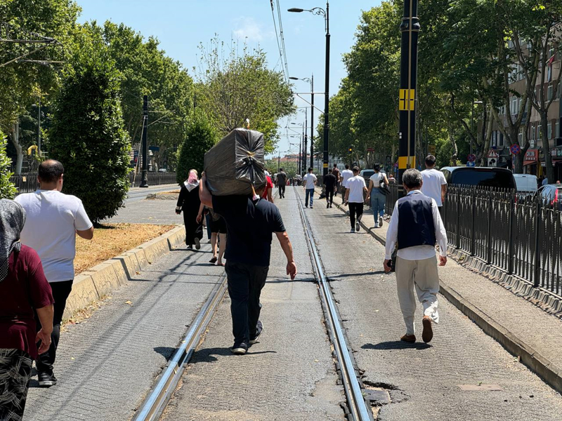 Vatandaşlar sefer yapılan duraklara yürüyerek ulaşmaya çalıştı. Tramvayın geçmediği Haseki ve Fındıkzade durakları şeritlerle kapatıldı.