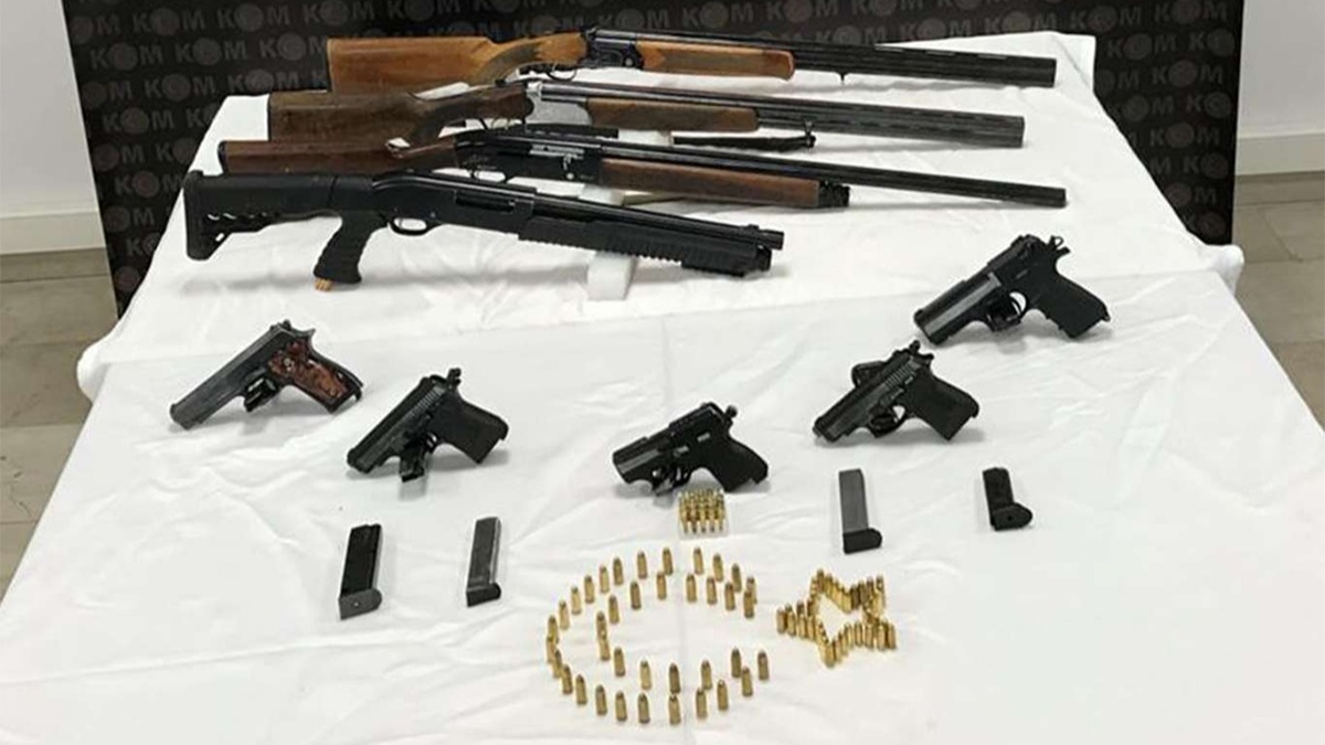 Adreslerde 13 ruhsatsız tabanca, 3 av tüfeği, 80 tabanca fişeği, 39 av tüfeği fişeği, gümrük kaçağı 430 paket sigara ile 4 şişe içki ele geçirildi.