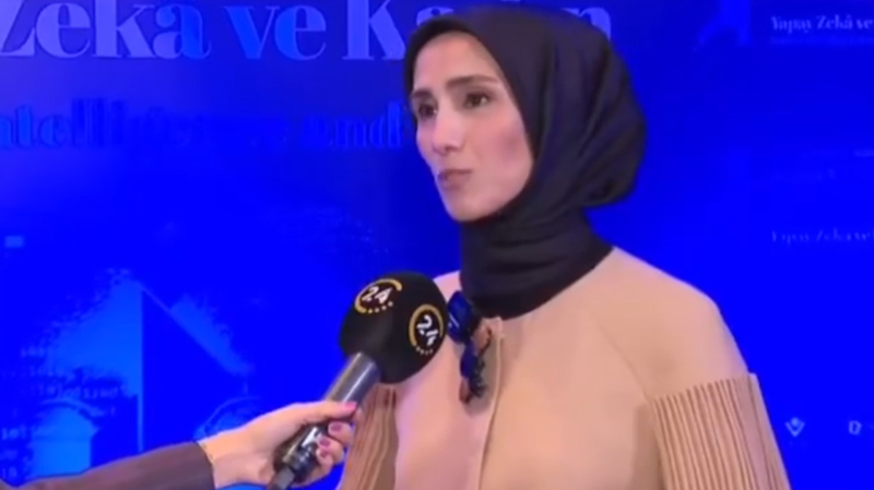 24 TV muhabirinin zirvenin teması olan "yapay zeka ve kadın" hakkındaki sorusunu cevaplayan Sümeyye Erdoğan Bayraktar, "Bize sık sorulan bir konu bu. Aslında çok önemli bir konu. Çünkü yapay zeka dünyanın her kesimini ilgilendiren bir teknoloji. Biz yapay zekayı hayatımızı kolaylaştıran bir enstrüman olarak kullanıyoruz. Fakat bununla beraber eğitimde, sağlıkta, akademide ve adalette çok çeşitli alanlarda kullanıyoruz. Bunun (yapay zeka) Ciddi tehditler de barındırabileceği görüldü. Yakın zamanda savaş bağlamında Gazze'de Lübnan'da yaşanılan örneklerde yine bu gibi teknolojilerin olumsuz yönde nasıl kullanılabileceğini çok canı ve acı bir şekilde görmüş olduk. " dedi.