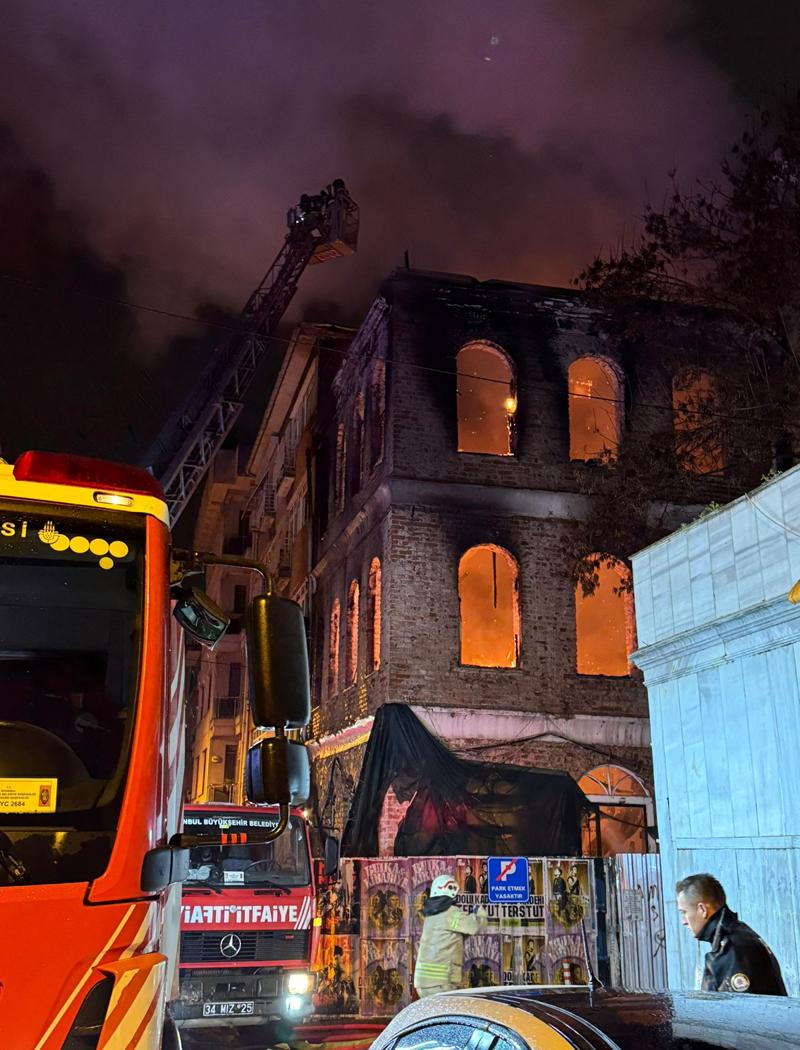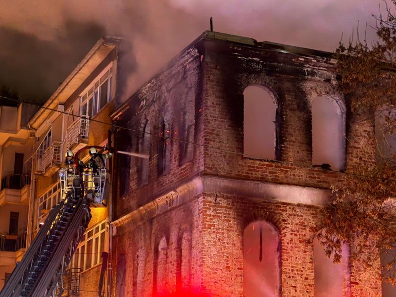 Caferağa Mahallesi Mühürdar Karakolu Sokak'ta bulunan 3 katlı yenileme çalışmaları devam eden tarihi binada henüz bilinmeyen nedenle yangın çıktı.